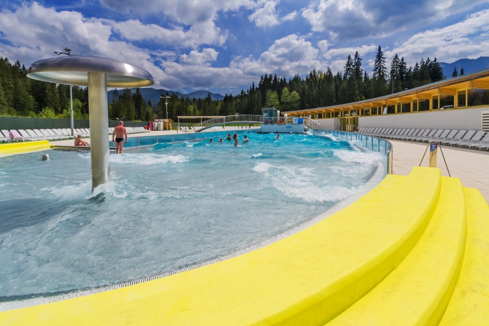 Największą atrakcją term jest z pewnością basen z symulacją fal morskich oraz zjeżdżalnia wodna o dlugości 100 m.