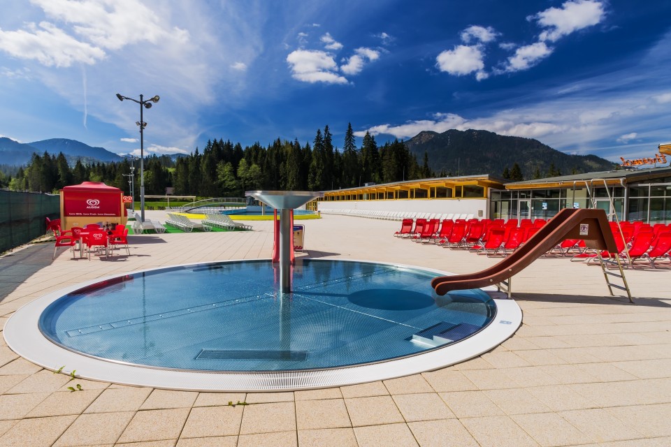 Do zabawy i odpoczynku przeznaczonych jest w sumie 9 basenów o powierzchni 1545 m2. Baseny działają przez 12 miesięcy w roku. Do części odkrytej można przez cały rok przejść korytarzem wodnym, który nawet w największych mrozach utrzymuje temperaturę 38° C. Kąpiele w gorącej wodzie w samym środku zimy to niezapomniane przeżycie dla większości odwiedzających.