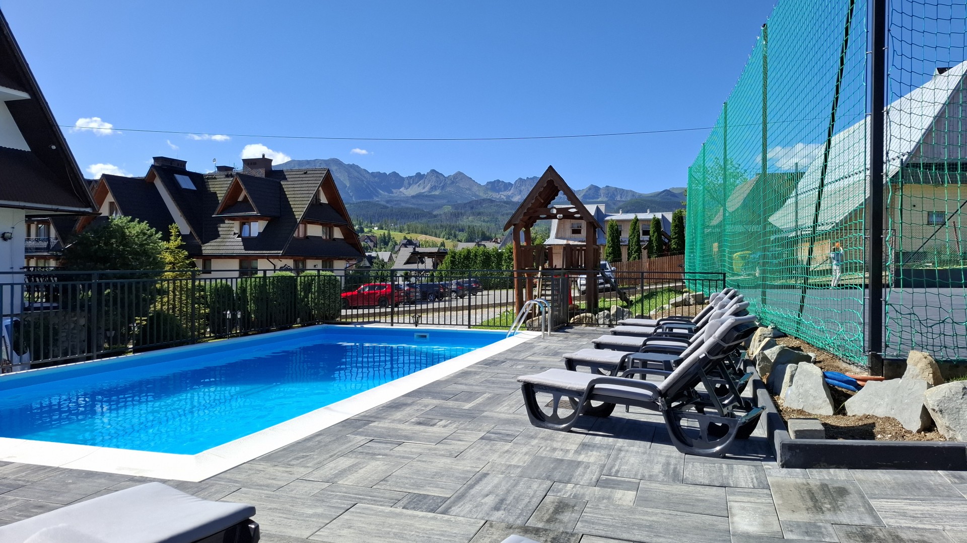 NOWOŚĆ!!! JACUZZI ZEWNĘTRZNE PLAC ZABAW WYŻYWIENIE BASEN ZEWNĘTRZNY Z PODGRZEWANĄ WODĄ, LEŻAKAMI I PIĘKNYM WIDOKIEM NA GÓRY!!!